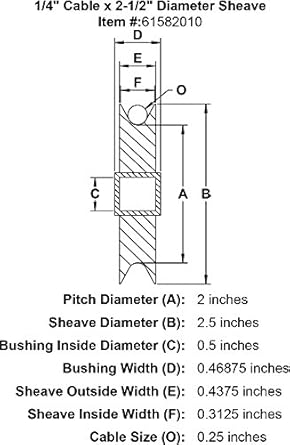 Nylon sheave pulley with 25 inch id stainless steel bushing 2 5 inch outside diameter. Designed for up to 25 inch diameter rope steel wire cable for indoor outdoor use. 5 8 this pulley should accommodate a 1 4 inch wire. Buy online pickup today.